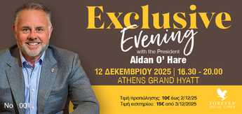 Join us for an exclusive evening with Aidan O’Hare, President of Forever International, right here in Greece! We look forward to seeing you all there!
